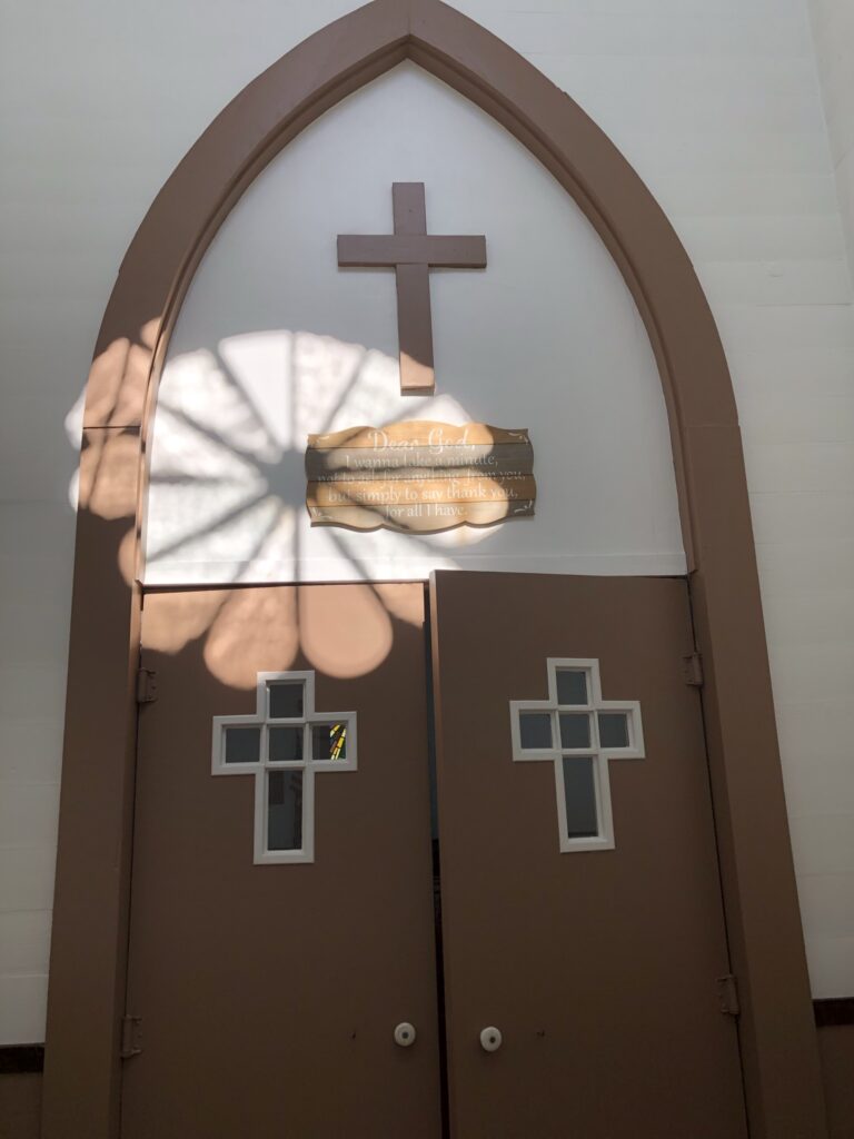 I have passed through this significant door many times. She was by herself as well. She reached first but struggled to open the impressive door. I offered help but her face told me she might’ve been struggling with more than I realize. There was no smile. Maybe she was visiting and felt unsure. I did not recognize her. She passed through the doorway and after a glance for a bulletin, she headed to the balcony empty-handed.